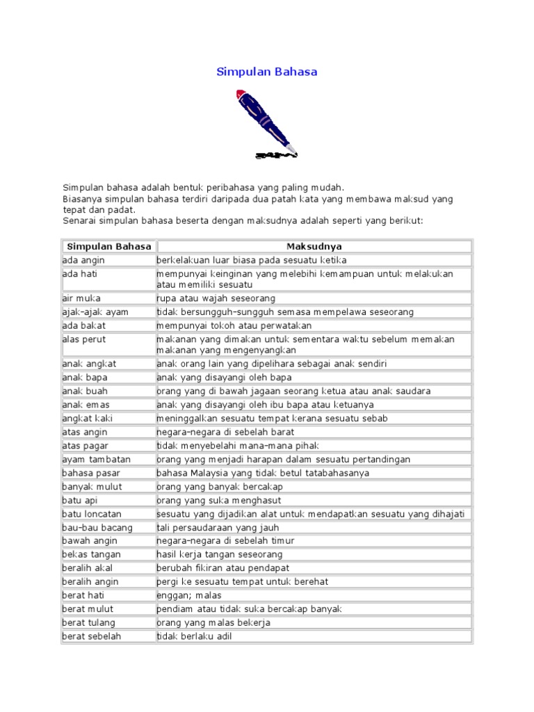Contoh Simpulan Bahasa Dan Maksudnya Pdf